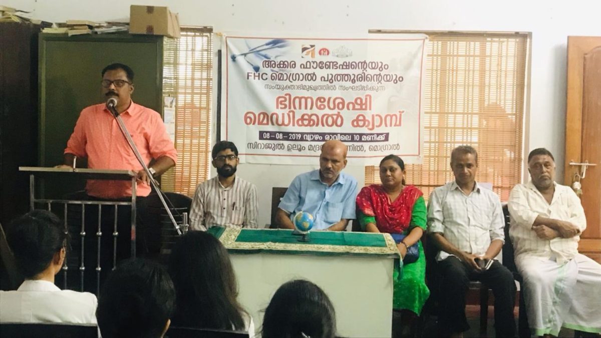 Akkara Foundation & FHC (Family Health Centre) Mogral Puthur jointly conducted a Differently-Abled Medical camp at Mogral Puthur Panchayath. The Camp was conducted at Sirajul Uloom Madrasa, Mogral Puthoor, Kumbala, Kasaragod.